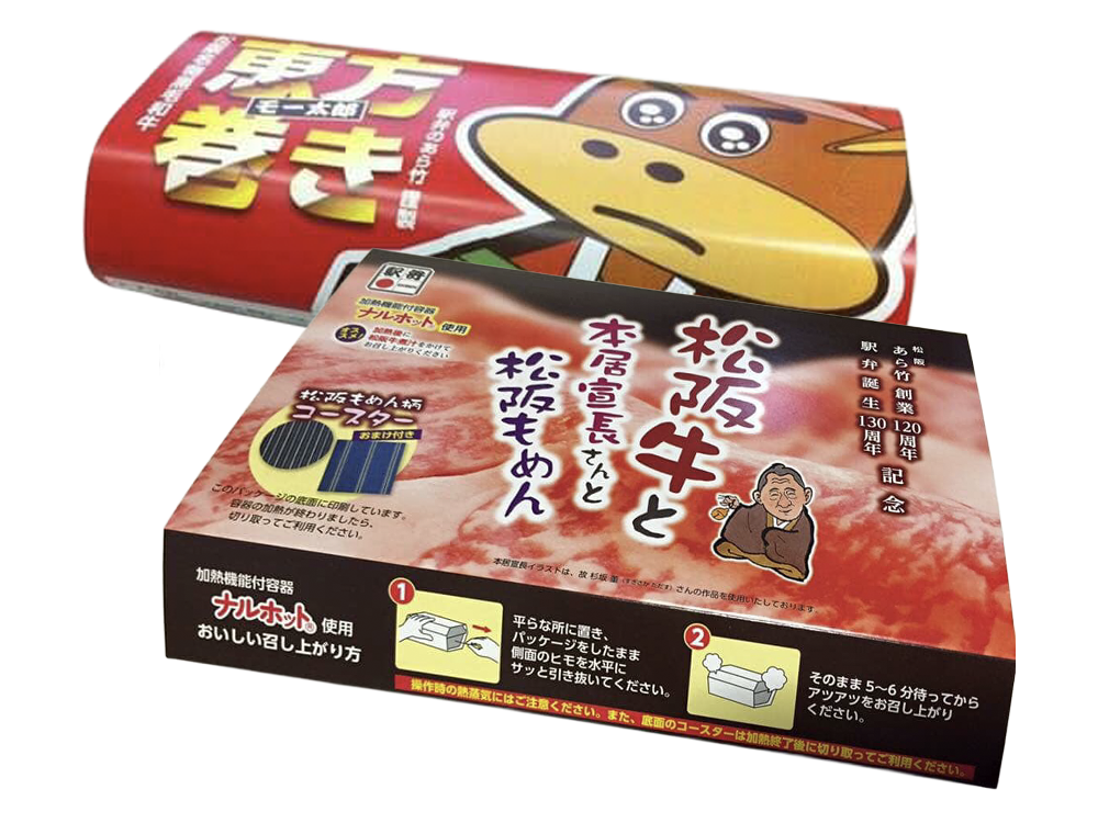 これまでの制作実績:食品(弁当、袋麺、健康食品)、日用品(マスク、ビニール手袋、玩具)など。